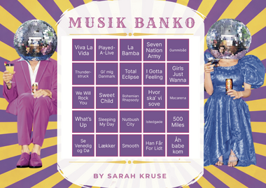 I stedet for at høre tal, spiller vi sange – og gæsterne skal genkende dem og krydse af på special lavet bankoplader.